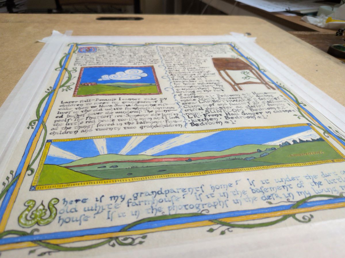 I started by copying pages out of random books – anything I could find a good reproduction of – but I’d been wanting to do something fully original, and when I read the call for art for HOME, the collaborative show between LexArt and LexHab, some things I’d been thinking about came together into the idea to do a piece about missing places that no longer exist in the way you remember them (specifically, my grandparents’ home).